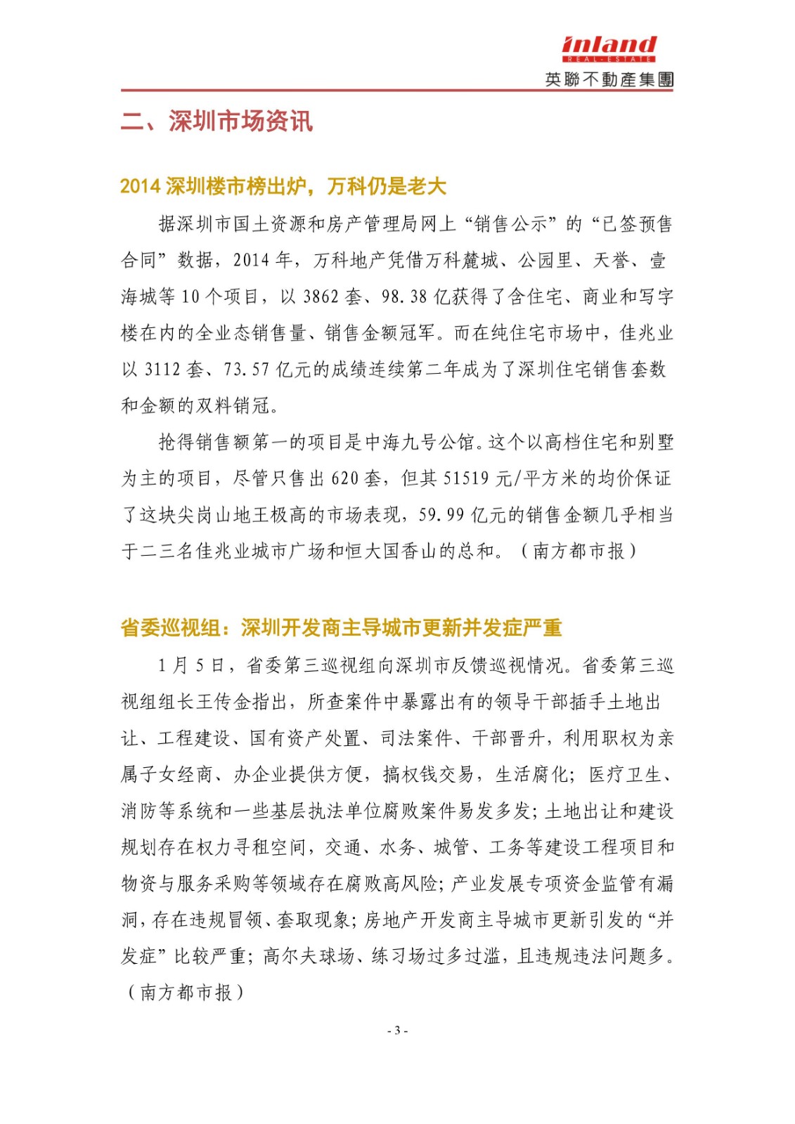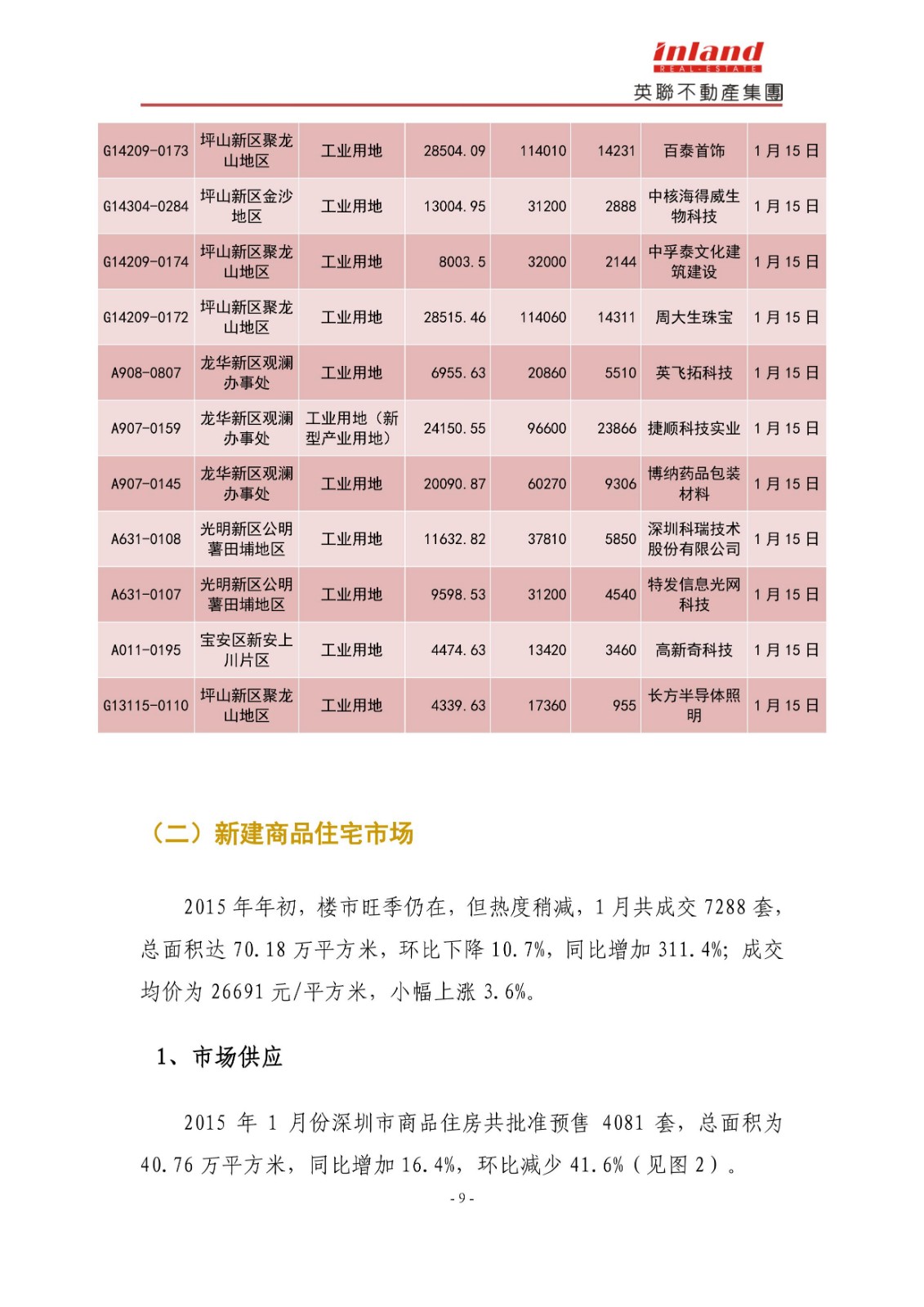2015年1月份深圳市房地产市场分析报告